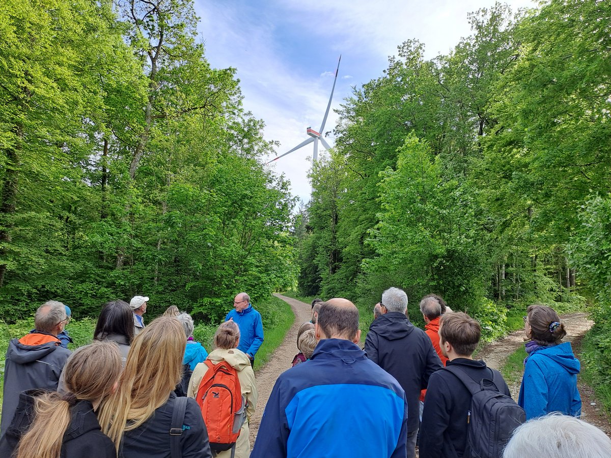 Die Teilnehmenden konnten sich eindrücklich von einer Vielzahl eingebauter Kontroll- und Abschaltsysteme bei Vogel- und Fledermausflug im laufenden Betrieb der WKA überzeugen. Auch die Besichtigung der Naturschutz-Ausgleichsmaßnahme war beeindruckend, so wurde wegen der Rodung von 2,9 ha Wald, inkl. der Wege, eine Aufforstung von 5,3 ha betrieben mit klimaresistenten Baumarten.