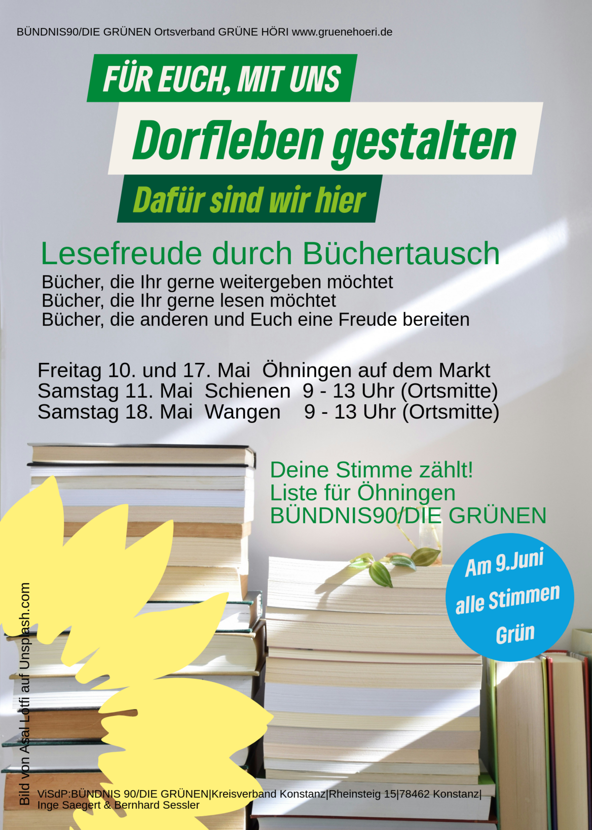Nicht nur die Bäume ergrünen und das Gras sprießt, wir erleben gerade auch wieder Rekordtemperaturen. Und was geschieht noch auf der Höri? Am 9. Juni finden gleich drei Wahlen statt, die große Auswirkungen haben können, gerade auf unser Zuhause hier am See: zu den Gemeinderäten, zum Kreistag und zum Europaparlament. Freie, geheime Wahlen sind ein wesentlicher Teil unserer Demokratie. Das ist schonmal ein guter Grund, wählen zu gehen. Aber welche Gründe gibt es noch für euch, für Sie? Welche Auswirkungen werden die Wahlergebenisse auch der Europawahl hier bei uns vor Ort haben? Darüber möchten wir ins Gespräch kommen.