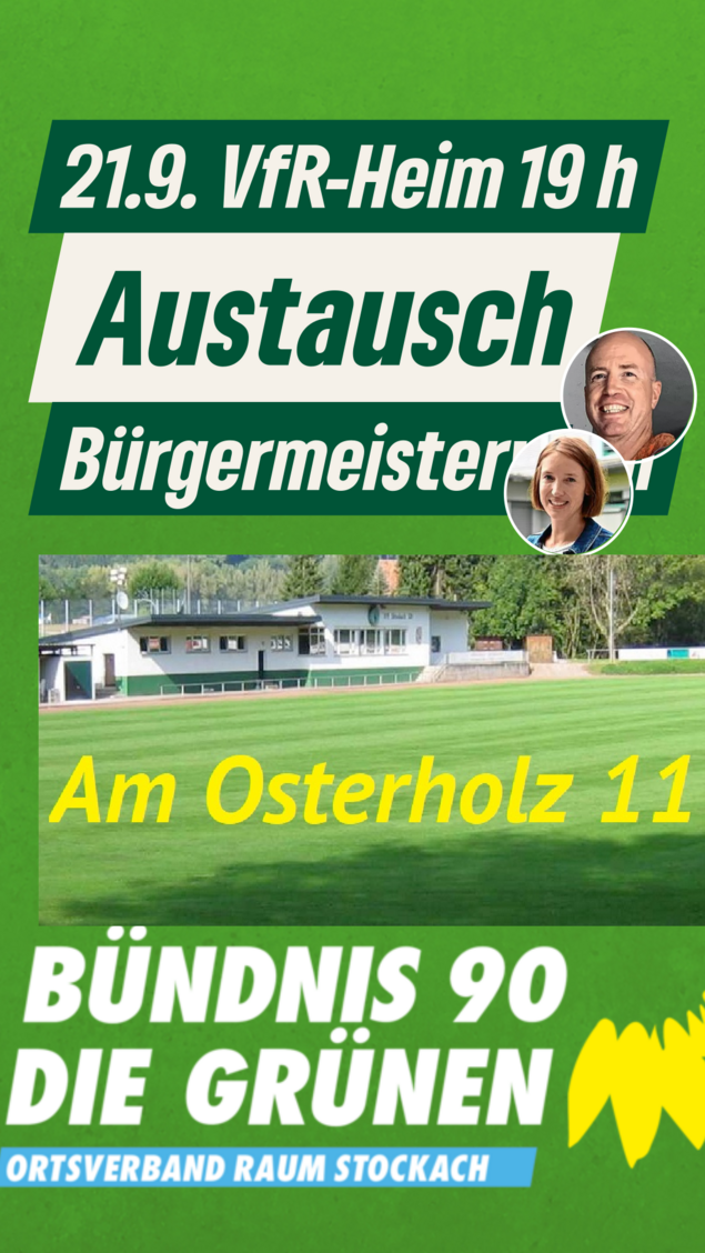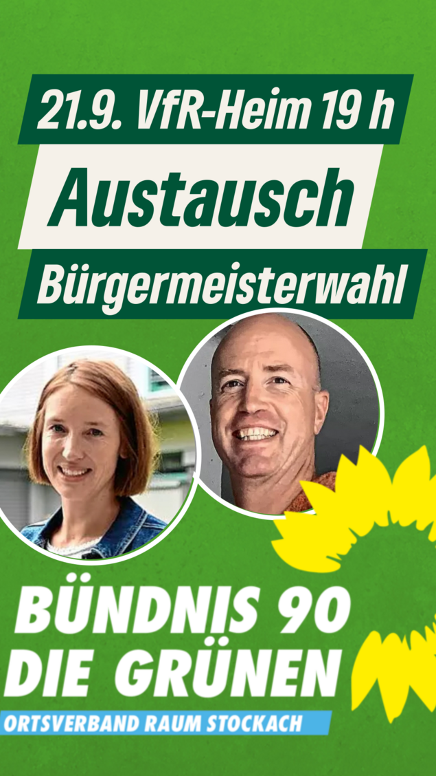 Wir freuen uns nun auf einen spannenden Kommunalwahlkampf 2024, den wir am 21. September im VfR-Heim mit der Befragung der beiden Stockacher Bürgermeister-Kandidat:innen Dr. Michael Mende und Frau Susen Katter bereits "eingeläutet" hatten.