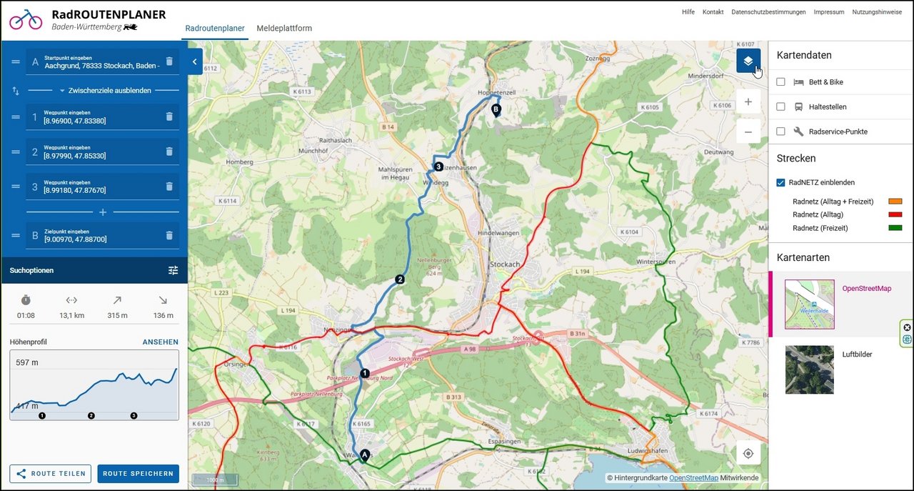 Ein echtes Highlight mit vielen nützlichen Funktionen: Der Radroutenplaner BW !